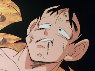 ... while Goku gives Kuririn the genki he gathered, literally putting the fate of the world in Kuri's hand.